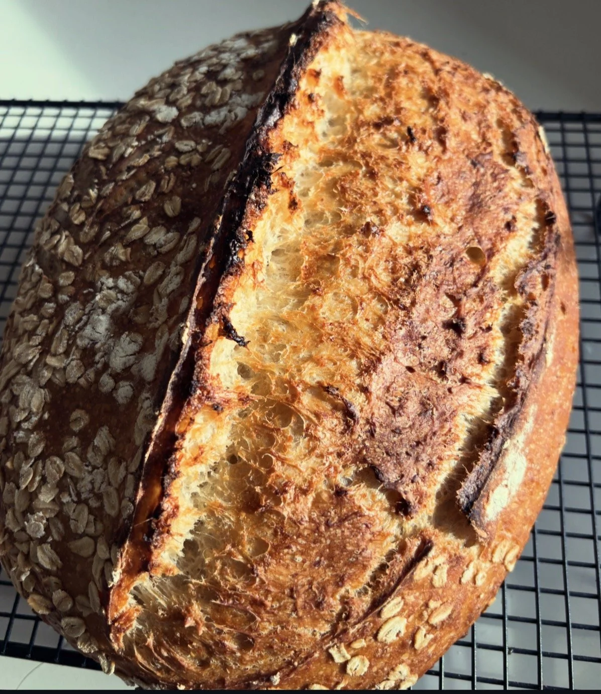 Ingredients: wheat flour, wholemeal flour, sourdough starter (flour, water), water, sea salt, honey, oats.